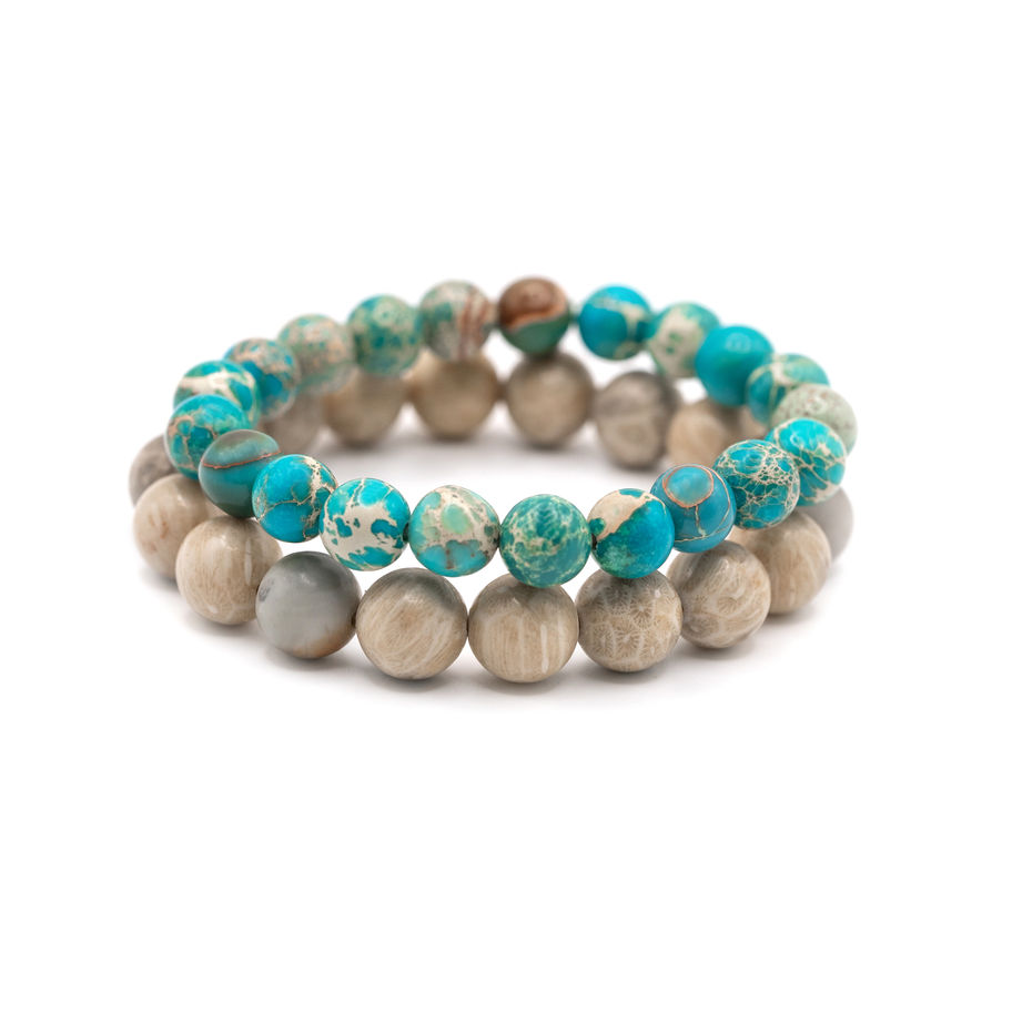 The Janie gemstone bracelet is a brilliant layering piece for a bracelet stack. Perfect to achieve a laid-back vibe to your look, with a sophisticated touch. Created from semi -precious gemstone, Jasper in this wonderful neutral colour with wonderful visable markings from its' formation in the earth. It has been strung onto elastic for an easy stretch fit.