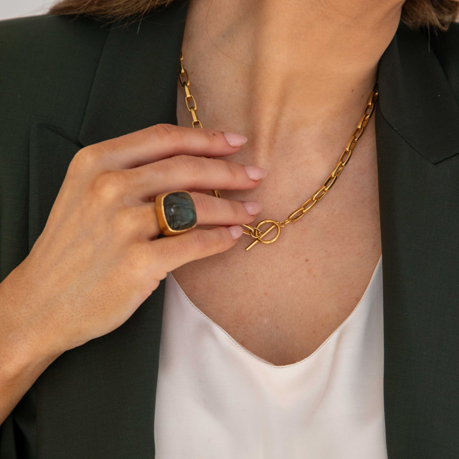The Lee necklace is fantastic addition to your jewellery wardrobe. Wear it with the link at the front or behind the neck showcasing only the link. The length is 20" so looks great layered with shorter finer peices or longer necklaces or as single statement.