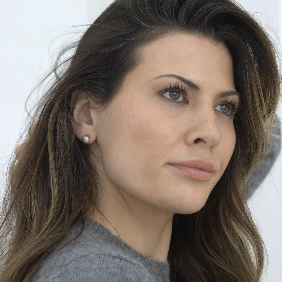 The Nia earring is possibly one the most useful earrings you could own. Being small and slightly curved it tucks gently around your earlobe. Works really well when wearing a statement necklace, as it doesn't compete for attention, but ensures a finished look. It has a matt finish to the silver.